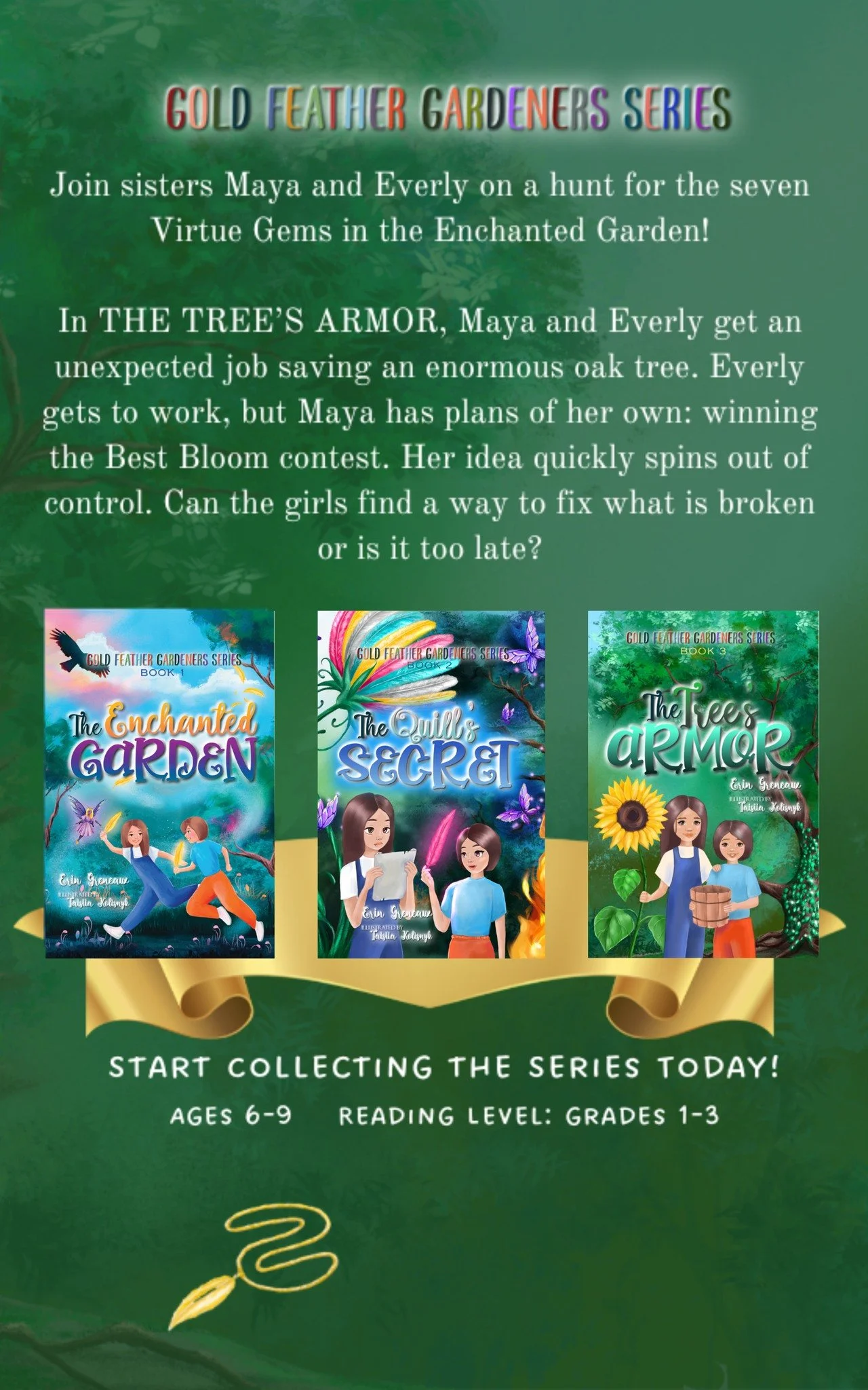 Gold Feather Gardeners Series Book 3 was released this month! I love this series! Join the Gold Feather Gardeners with sisters Maya and Everly to learn the true meaning of life’s greatest virtues through beautifully illustrated stories that linger in children’s hearts and minds. Ages 4-9.